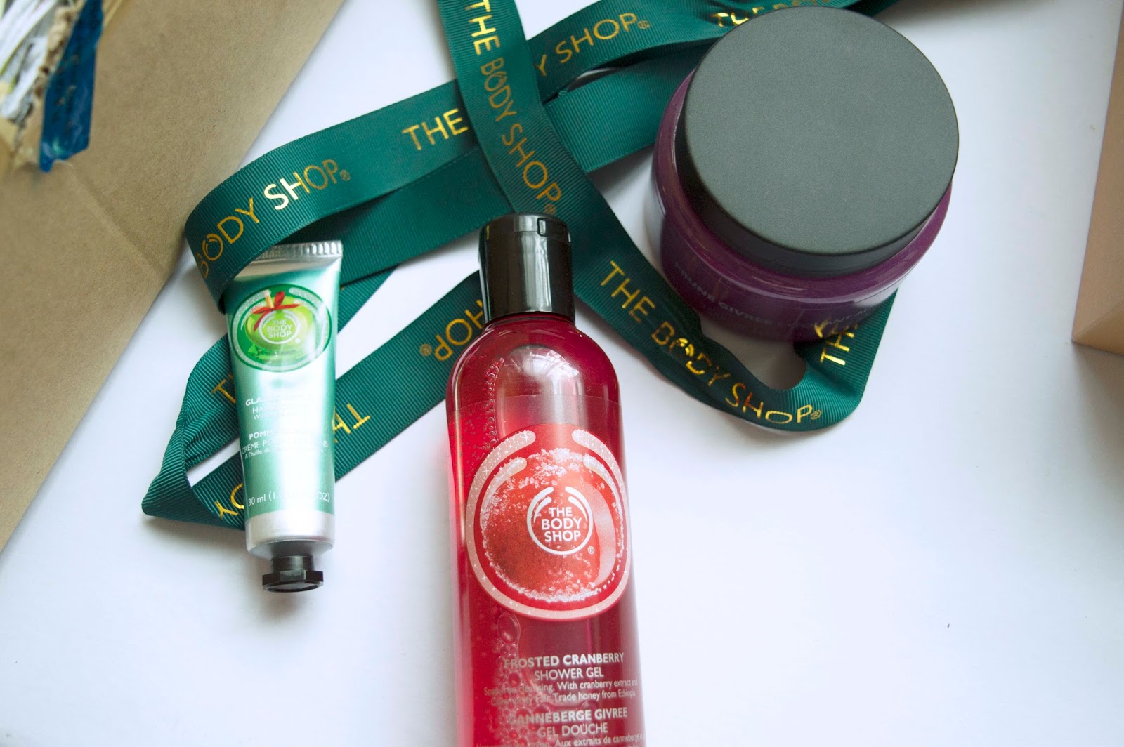 I was so distracted by all the colors that I felt like a kid in a candy store, unable to choose which products to buy. Thankfully the employee attending to me was kind enough to let me try all the different scents and she suggested a few products I should try. I ended up choosing the individual products because I wanted to try one product from each of the different scents. So I picked up frosted plum sugar scrub, pomegranate shower gel, and lastly the glazed apple hand cream. The employee attending to me helpfully pointed out that the frosted plum collection is not to be missed as it is the latest addition to the festive collection. Whereas the glazed apple was an addition made in the previous year. As we all know the frosted cranberry is a classic collection that The Body Shop have been coming out with year after year and for a good reason too, it's such a nostalgic scent to me and is definitely a classic in my books!